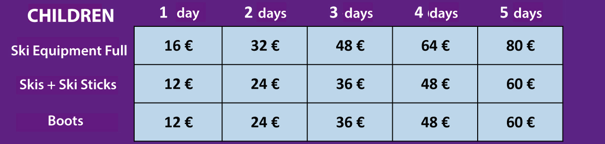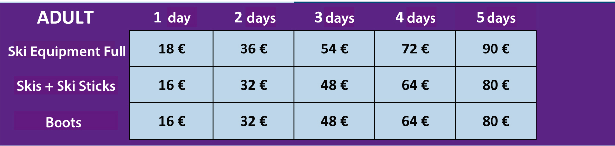 The best offers and packs for the family. (Ski pass, Rent and Classes).