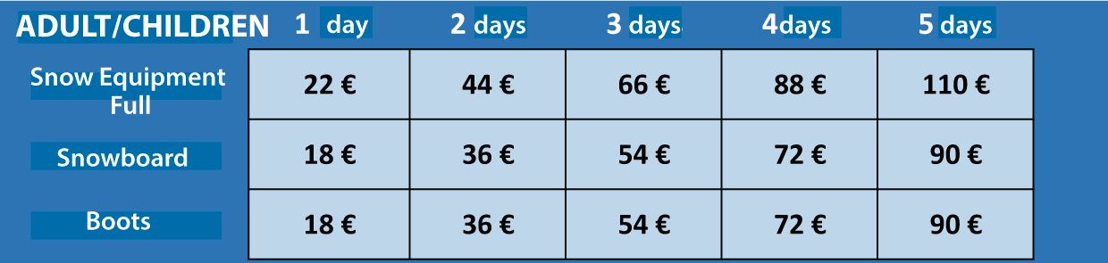 Experts in the rental of snow equipment, with the best accessories for sale so that you do not need anything and a workshop with more than 20 years of experience. But what makes us different is our personalized attention and a daily report on the state of the snow slopes.